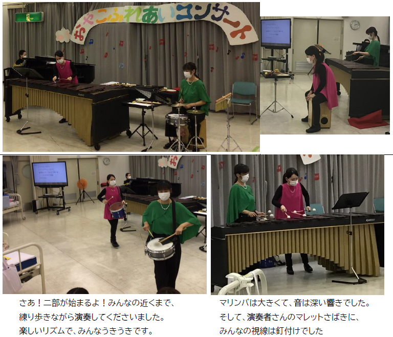日頃親しみのある曲から、クラッシックの曲まで幅広いプログラムで、楽器もピアノやマリンバ、普段見たことのない様々なパーカッションを取り入れていただき、聴きごたえたっぷり。